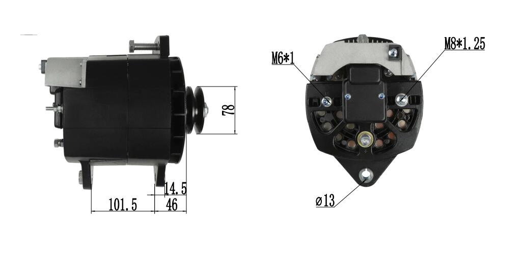 Sadrži remenicu s 2 utora (2PK) i standardnu vezu s 2 terminala (B plus i D plus) za izravnu ugradnju pomoću originalnih točaka za montažu i putanje remena